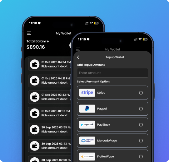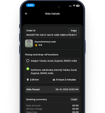 Configure services: ride, parcel, rental; set pricing & policies.