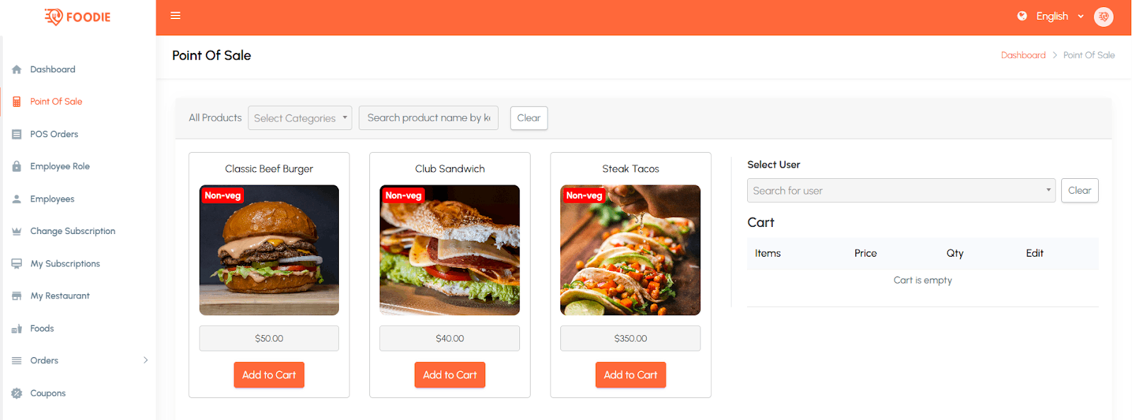 Manage in-person or counter sales using the Point of Sale system. This feature allows staff to quickly create orders, add products or services, apply taxes, and process payments in real time. It’s ideal for handling walk-in customers, improving checkout efficiency, and keeping all transactions synchronized with platform order records.